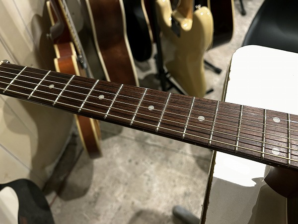 プレイコンディションは良好です。ネックは反りも無く真っ直ぐで良好な状態です。フレットも大きな減りは無く8分程度は残っており、丁寧に磨きも入れ、光沢のある綺麗なコンディションになっています。指板は軽度の減り、使用感はありますが、大きな減りや傷も無く、良好なコンディションです。指板も丁寧にクリーニング、コンディショニングしておりますので綺麗で良好な状態になっております。ネック起きやトップのふくらみ、ブリッジ浮きなどもありません。全体的にしっかりとメンテナンス、セットアップを施しておりますので、弾きやすく、ビビリやつまりも無く、良好な出音になっています。現在弦高は12フレット上1弦約2mm、6弦約3mmです。ペグ動作も問題無く、良好なコンディションです。電装系、コントロール、出音共に問題ありません。プレイコンディションは良好で、調整、セットアップ済のグッドプレイコンディションです。