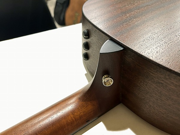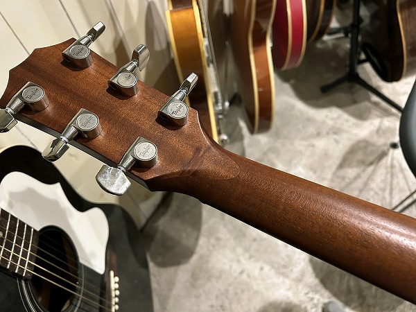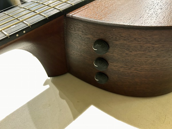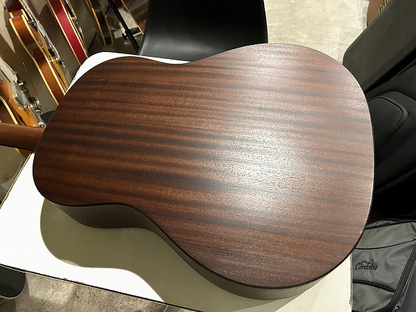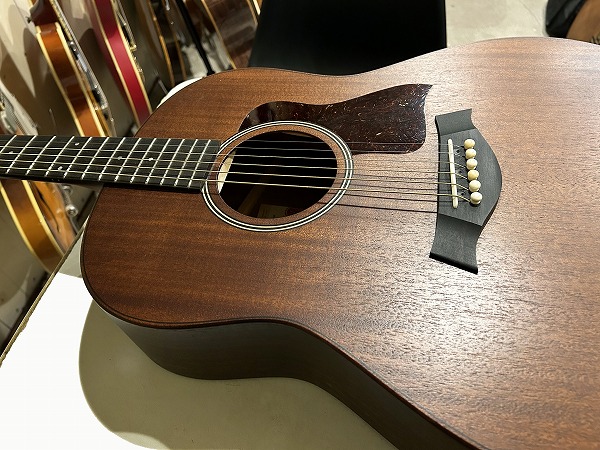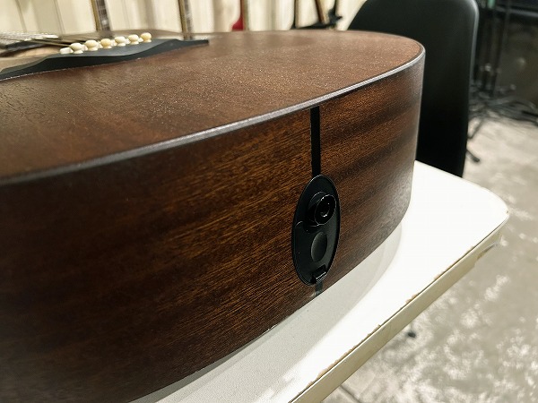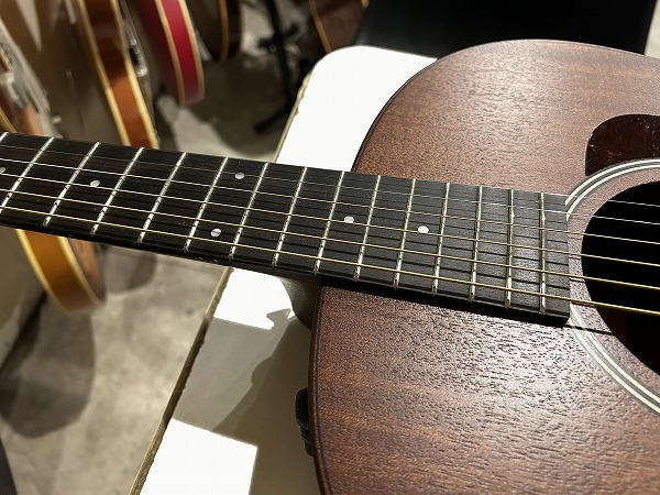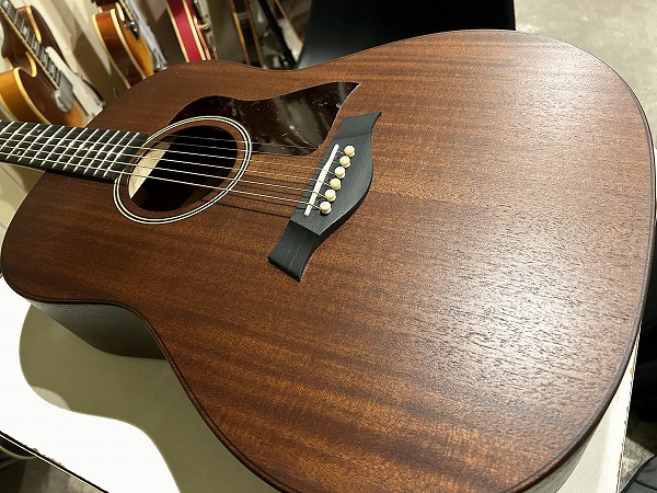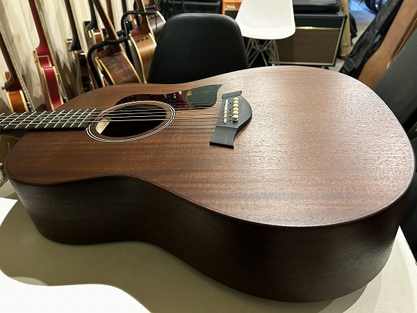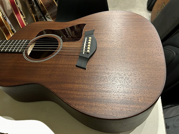 ボディシェイプはグランドパシフィック、トップはトロピカル・マホガニー単板、サイド&バックはサペリ単板のオール単板仕様、ネックもトロピカルマホガニーといった仕様に、フィニッシュは深みのある色味のオール・サテン・フィニッシュになっているのが特徴的です。このスペックにより独特の深みのあるサウンドを生み出しており、豊かな中低音の鳴りと、甘くスイートでウォームなトーン、乾いたトーンのブライトさ、明瞭さもありながら、硬くなく、ほど良いコンプレッション感、まとまりのあるサウンドとなっています。深みのある鳴り感とスイート&ブライトなトーンはGibson系アコースティックユーザーにも好まれるサウンドではないでしょうか。丁寧に面取りされたボディエッジの感触も優しく、木の感触とあいまって、ナチュラルで上質な弾き心地です。ピックアップシステムはES2を搭載しています。