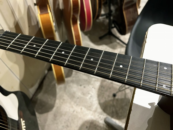 プレイコンディションは良好です。ネックは反りも無く真っ直ぐで良好な状態です。ロッドもまだ余裕があります。フレットは大きな減りは無く、まだ8分程度は残っており、大きなへこみや弦溝もなく、さらに丁寧に磨きも入れ、光沢のある綺麗なコンディションです。指板も大きな減り、傷、ダメージはなく、丁寧にクリーニングの上、コンディショニングも行っておりますので、綺麗で良好なコンディションになっています。ナット、ブリッジ溝も大きな減りも無く、良好な状態です。ネック起きやブリッジ浮き、トップのふくらみもありません。現在弦高は12フレット上1弦2mm、6弦2.5mmで、弾きやすく、出音も良好です。電装系もコントロール、出音共に問題無く、プレイコンディションは良好です。