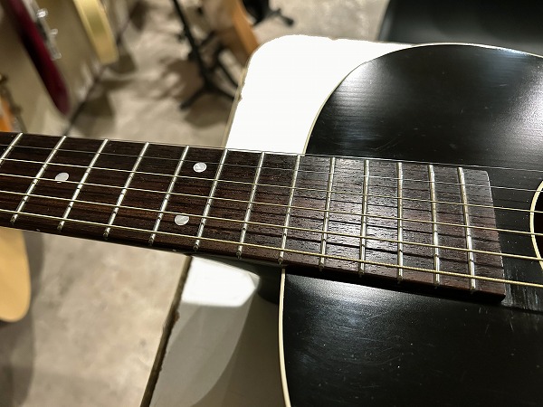 コンディションも良好です。プレイコンディション良好で、演奏性、出音良好です。ネックは真っ直ぐで、トップのふくらみ、ブリッジ浮きやネック起きもありません。ロッドもまだ余裕があります。フレットもまだ8分程度は残っており、大きな減りやへこみ、弦溝も無く、丁寧に磨きも入れ、光沢のある綺麗なコンディションです。指板も大きな減りやダメージは無く、こちらも丁寧にクリーニング・コンディショニングを行っており、綺麗なコンディションになっています。ブリッジサドルの高さも十分に残っています。弦高は12フレット上1弦2mm、6弦2.5mmとローアクションで弾きやすく、出音も良好です。各種メンテナンス、セッティング済みで、演奏性、出音共に良好のグッドプレイコンディションです。