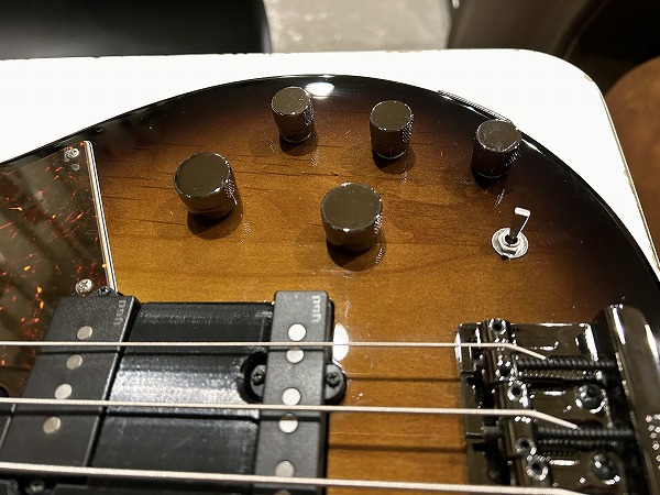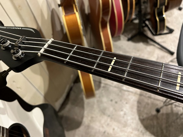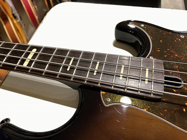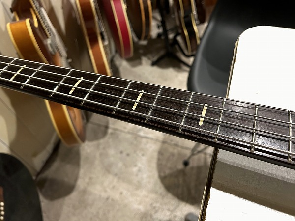 プレイコンディションは良好です。ネックは反りも無く真っ直ぐで良好な状態です。ロッドもまだ余裕があります。フレットも大きな減りは無く、まだ8分程度は残っており、大きなへこみや弦溝もありません。丁寧に磨きも入れており、光沢も取り戻しています。指板も若干の使用感程度で、大きなダメージ、大きな減りは無く、こちらも丁寧にクリーニングの上、コンディショニングも行っており綺麗なコンディションになっています。しっかりとメンテナンス、セットアップも施しておりますので、弦高はローアクションで弾きやすく、ビビリやつまりも無く、良好な出音です。現在弦高は12フレット上1弦1.5mm、4弦2mmです。電装系も出音、コントロール共に全く問題ありません。メンテナンス、セッティング済、プレイコンディション良好ですぐにそのままお使いいただけます。