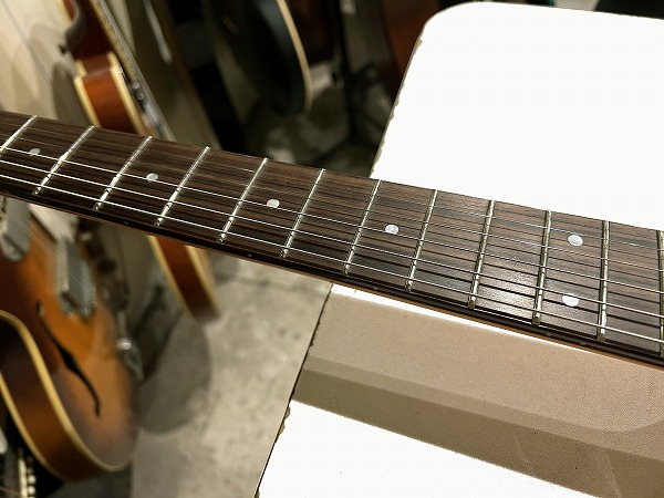 プレイコンディションは良好です。ネックは反りも無く真っ直ぐで良好な状態に調整済です。ロッドもまだ十分に余裕があります。フレットも大きな減り無く、まだ9分程度は残っており、大きなへこみや弦溝もありません。弦高ローアクションセッティング済でビビリやつまりも無く、出音良好です。フレットは丁寧に磨きも入れており、光沢のある綺麗なコンディションです。指板も大きな減りやダメージは無く、指板も丁寧にクリーニングの上、コンディショニングも行っており綺麗なコンディションになっています。全体的にしっかりとメンテナンス、セットアップも施しております。現在弦高は12フレット上1弦1.5mm、6弦1.5mmです。電装系も出音、コントロール共に全く問題ありません。メンテナンス、セッティング済、プレイコンディション良好ですぐにそのままお使いいただけます。