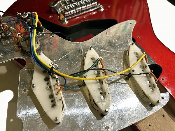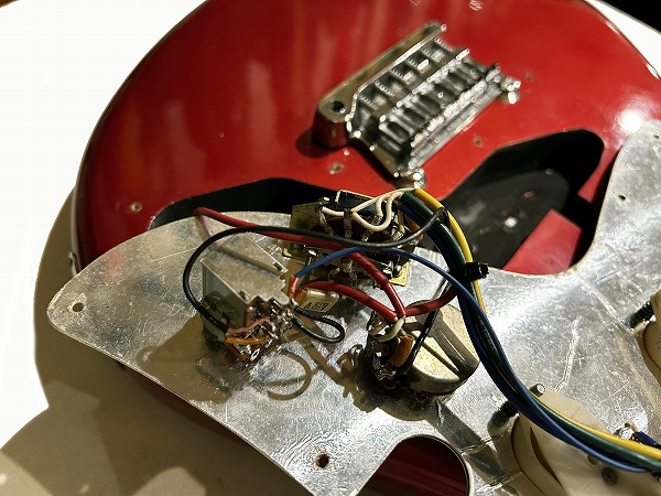 Lever SWとなっています。また、トーンはPUSH-PULLスイッチに交換されており、リアまたはフロント選択時にPULLすると出力がアップします。これにより、通常のシングルサウンドだけでなく、太くパワフルなサウンドが得られます。音色の変化やトーンの質感の変化が少なくナチュラルですので、リード時のナチュラルブースター的に、音量アップ的にも色々使えると思います。